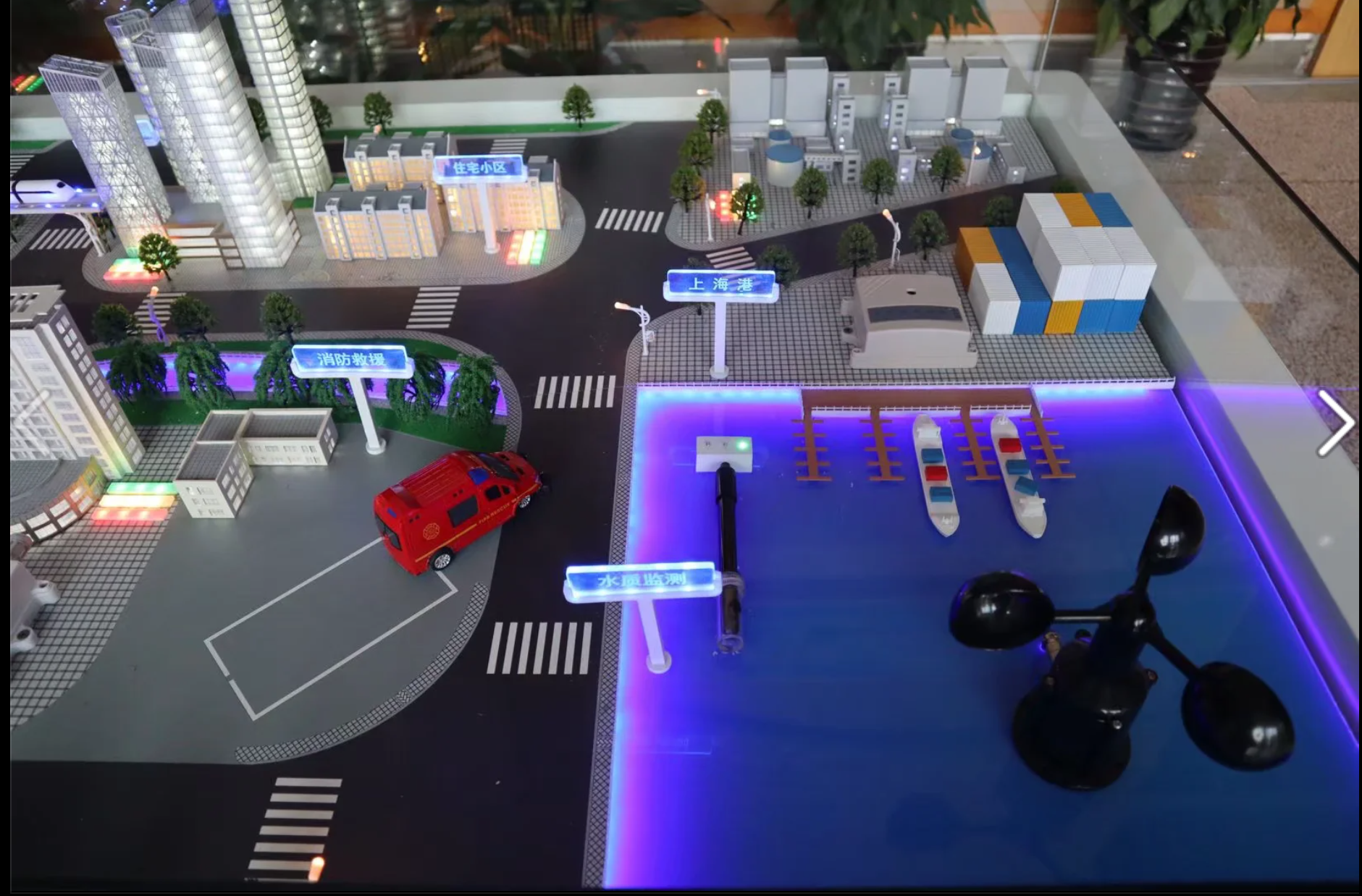 上海伏芳科技的智慧城市沙盘,将实体沙盘与数字孪生技术相结合,形成一套“虚实联动”的展示与模拟系统。沙盘上,楼宇、道路、交通枢纽、能源设施等模型与后台数据系统相连,能够动态反映城市运行的多个维度。