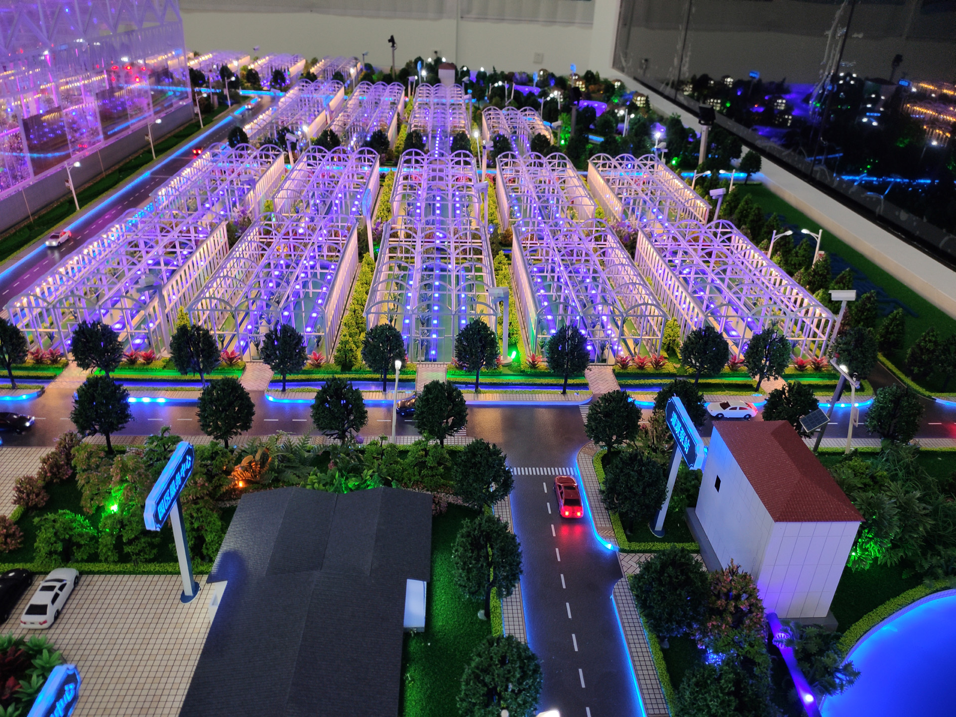 项目说明:本沙盘以智慧温室、连栋大棚、冬暖大棚为主,重点展示各种温室的增温补光,智能控制、施肥灌溉的先进技术等的展示